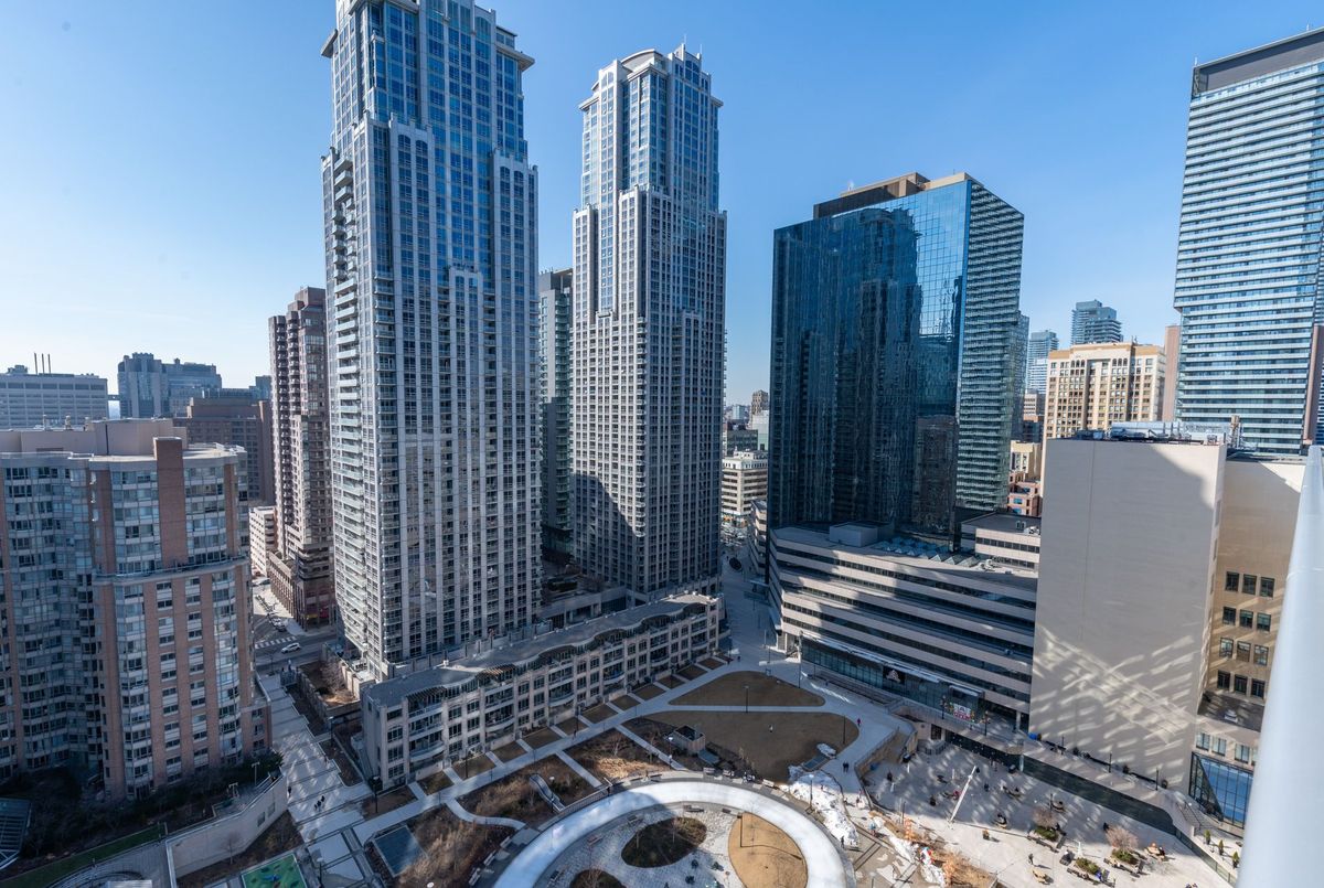 Welcome to Aura at College Park, one of Toronto's most iconic condominium residences, offering luxurious urban living in the heart of downtown. This bright and spacious 1-bedroom, 1-bathroom suite features a modern open-concept layout with floor-to-ceiling windows, high ceilings, and contemporary finishes throughout. The sleek kitchen is equipped with stainless steel appliances, stone countertops, and ample cabinet space, flowing seamlessly into the combined living and dining area-perfect for entertaining or relaxing after a long day. The bedroom offers generous closet space and natural light, while the spa-inspired bathroom and in-suite laundry add everyday convenience. Residents of Aura enjoy an exceptional array of amenities including a state-of-the-art fitness centre, 24-hour concierge, media and games rooms, party and meeting rooms, guest suites, and a rooftop terrace with stunning views of the city. Situated above a major retail podium with direct underground access to College Subway Station and the PATH system, this location offers unbeatable convenience. You're steps from Eaton Centre, Yonge-Dundas Square, University of Toronto, Toronto Metropolitan University, major hospitals, world-class dining, shopping, and entertainment. This is downtown living at its finest-perfect for professionals or students seeking a vibrant lifestyle with everything at their doorstep. Convenient ensuite locker in unit.